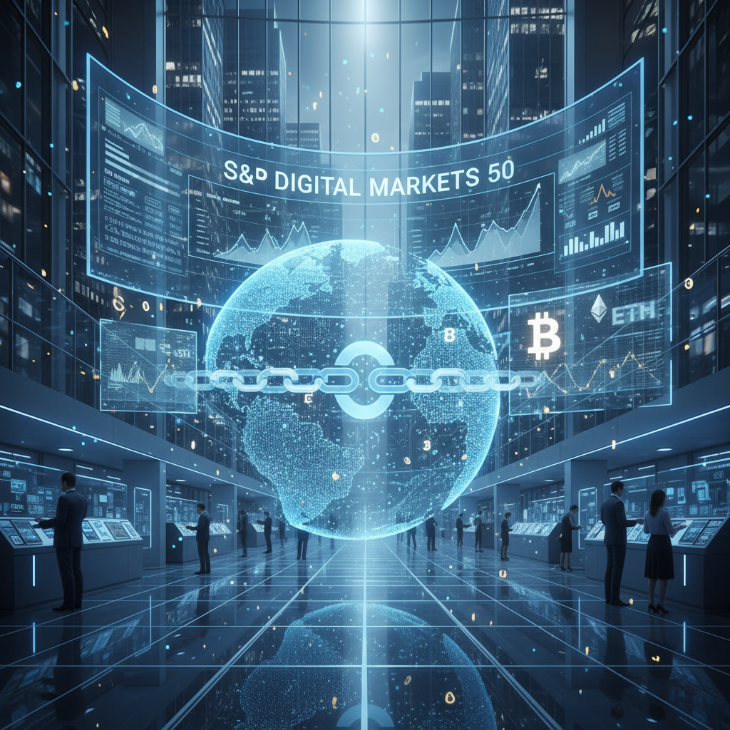 The S&P Digital Markets 50 is described as a hybrid, on-chain index that will combine 35 U.S. technology companies with exposure to blockchain, and 15 major digital assets (crypto-tokens) — although the exact constituent list has not yet been publicly disclosed.