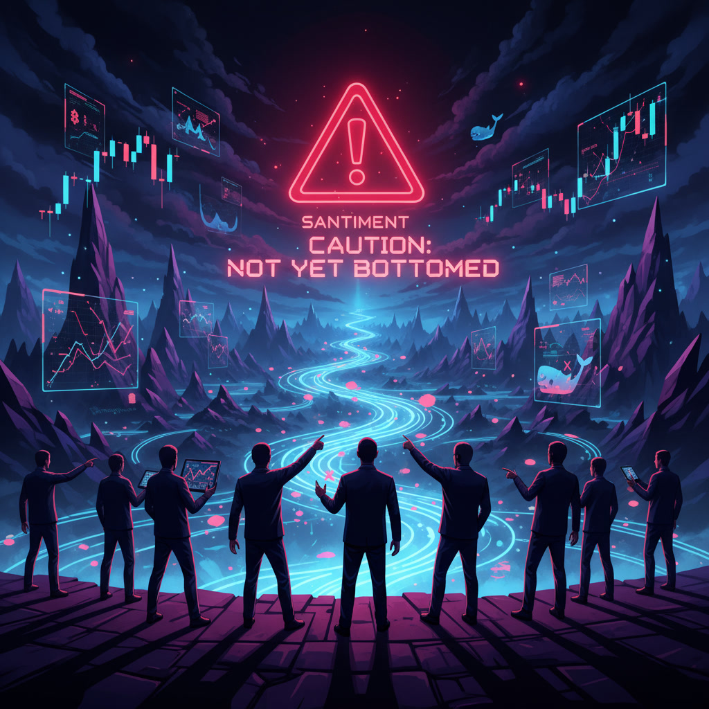 Santiment’s analysis suggests that the probability of a confirmed market bottom remains low, even though commentary on social platforms shows rising confidence that prices have stabilized.